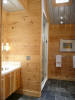 Large walk-in shower with window overlooking river. Two separate vanities and closets. Skylight.